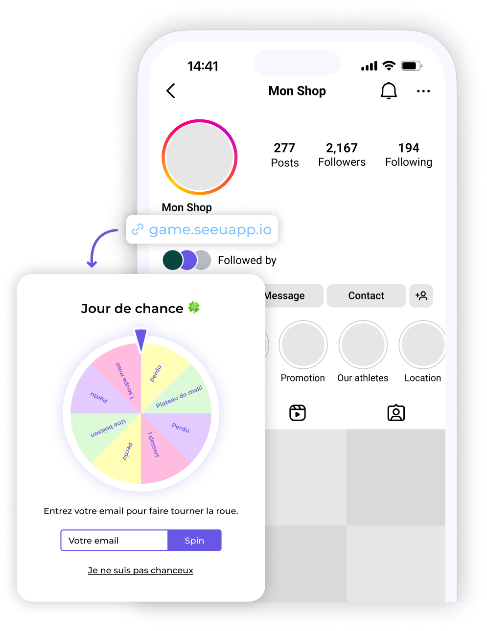 Attirez vos followers Instagram en boutique, transformez-les en clients fidèles.